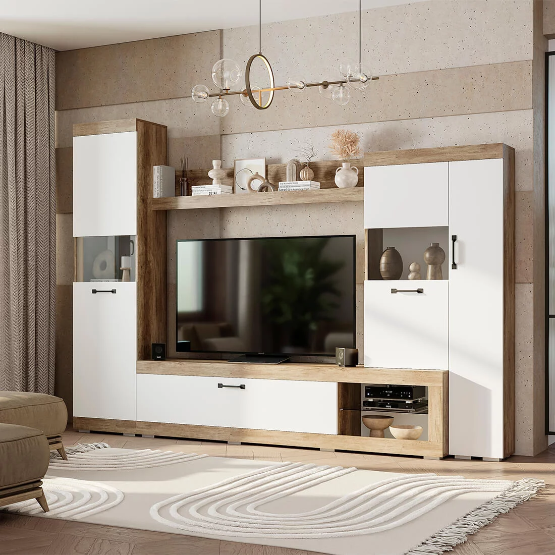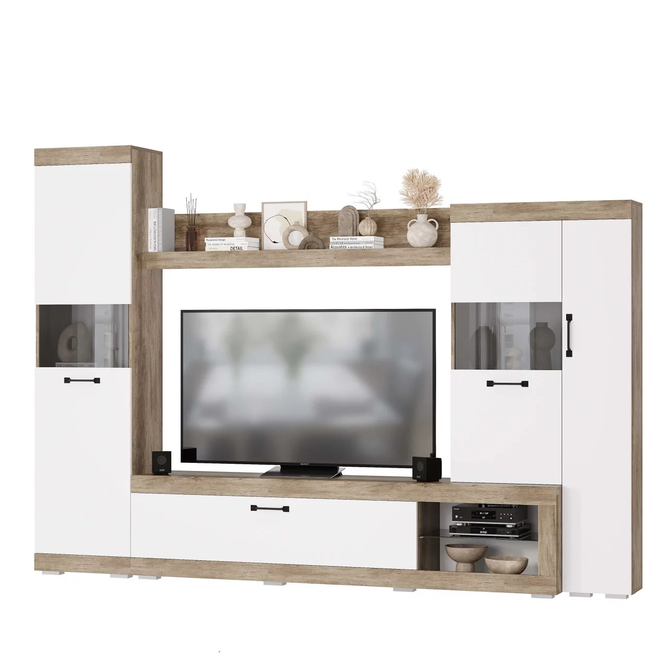 Современная гостиная «Тесла» выражает надежность, удобство и универсальность в домашнем интерьере, подчеркивая ваш интерес к инновациям и уникальным решениям. Корпус из ЛДСП в оттенке «Дуб каньон» с эффектом естественного породного спила дерева дуба, напоминающего текстуру сорта дуба премиум класса, гармонично сочетается с гладкими фасадами из МДФ в облачно-белом цвете.